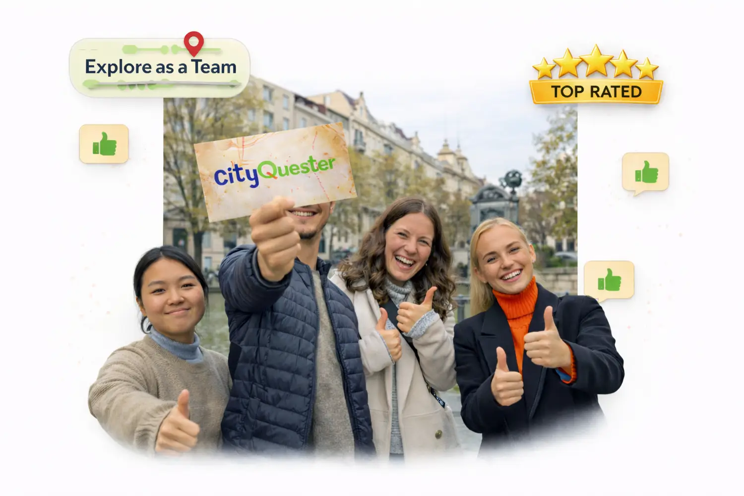 Our city-based team experiances turn Vienna into a shared mission, where small teams of 4–6 solve challenges, collect points, and discover the city together at their own pace. No one is left standing on the sidelines, and no one is forced into the spotlight. Everyone contributes, everyone stays involved, and by the end, everyone leaves with a story to share. And because the entire experience is guided by a dedicated event manager, the fun also feels smooth, structured, and safe from start to finish.